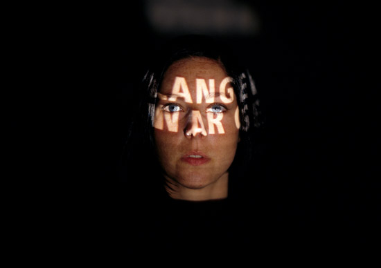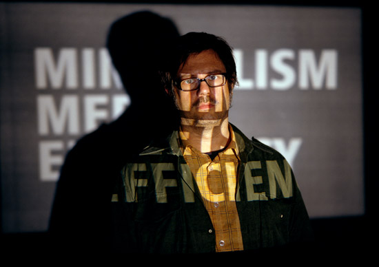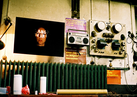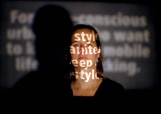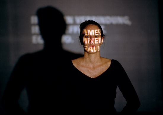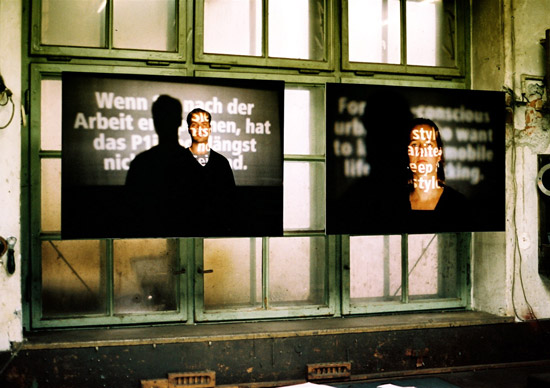 In this work, advertising slogans for mobile phones are projected on the deniers’ faces. They are exposed to the allurement but are in no way affected by them.